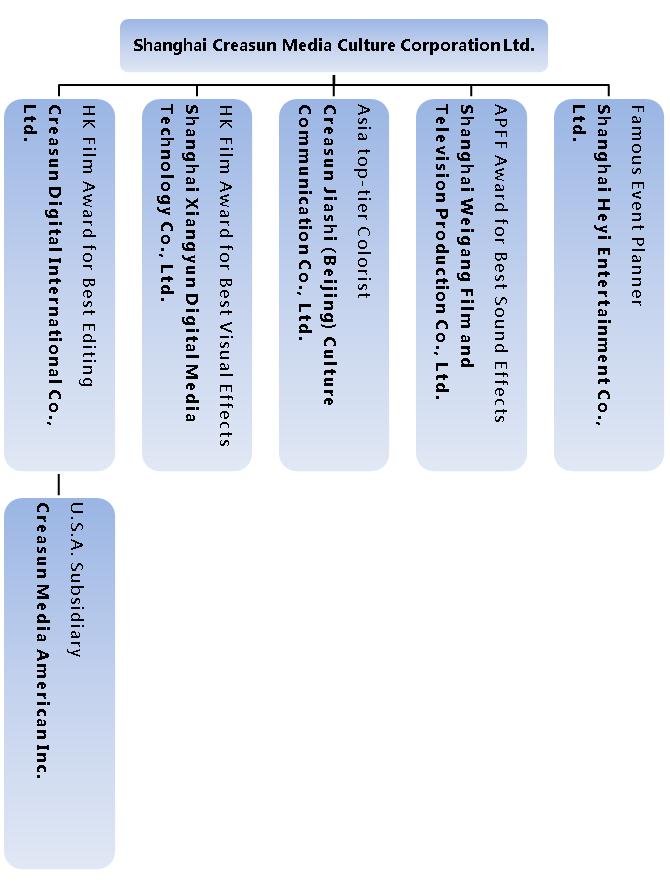 ◆ Shanghai Creasun Media Culture Corporation Ltd. founded in 2007, after more than 10 years of development it has become a film and television technology company, with technology as its core and three main sections which are “technology + content”, “technology + production” and “technology + pan entertainment” as its layout. Creasun Media has subsidiaries which located in Beijing, Hong Kong, and Los Angeles.